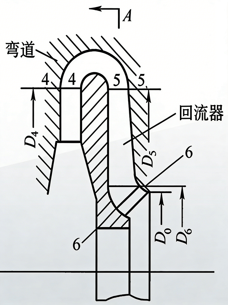 弯道一般不安装叶片,气体如同在无叶扩压器中流动一样,气体从扩压器出来后经弯道拐180°弯进入回流器。